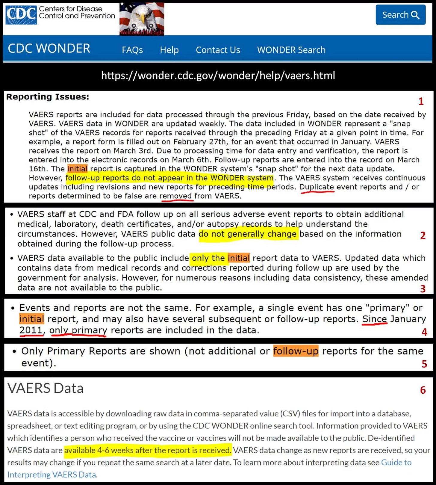 Throttling (Purposeful delay of publication): ~20% of all 1.6M Covid-19 were initially published outside the six weeks max time limit adjudication window. Of which ~58K reports were published four months after received. Hundreds of the most extremely throttled death reports one, two, and three years after publication, see HERE.